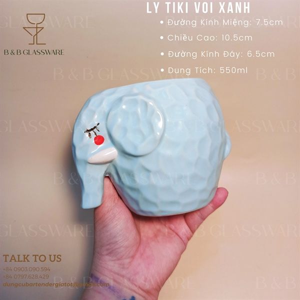 - Tên sản phẩm: Ly Sứ Tiki Voi Xanh