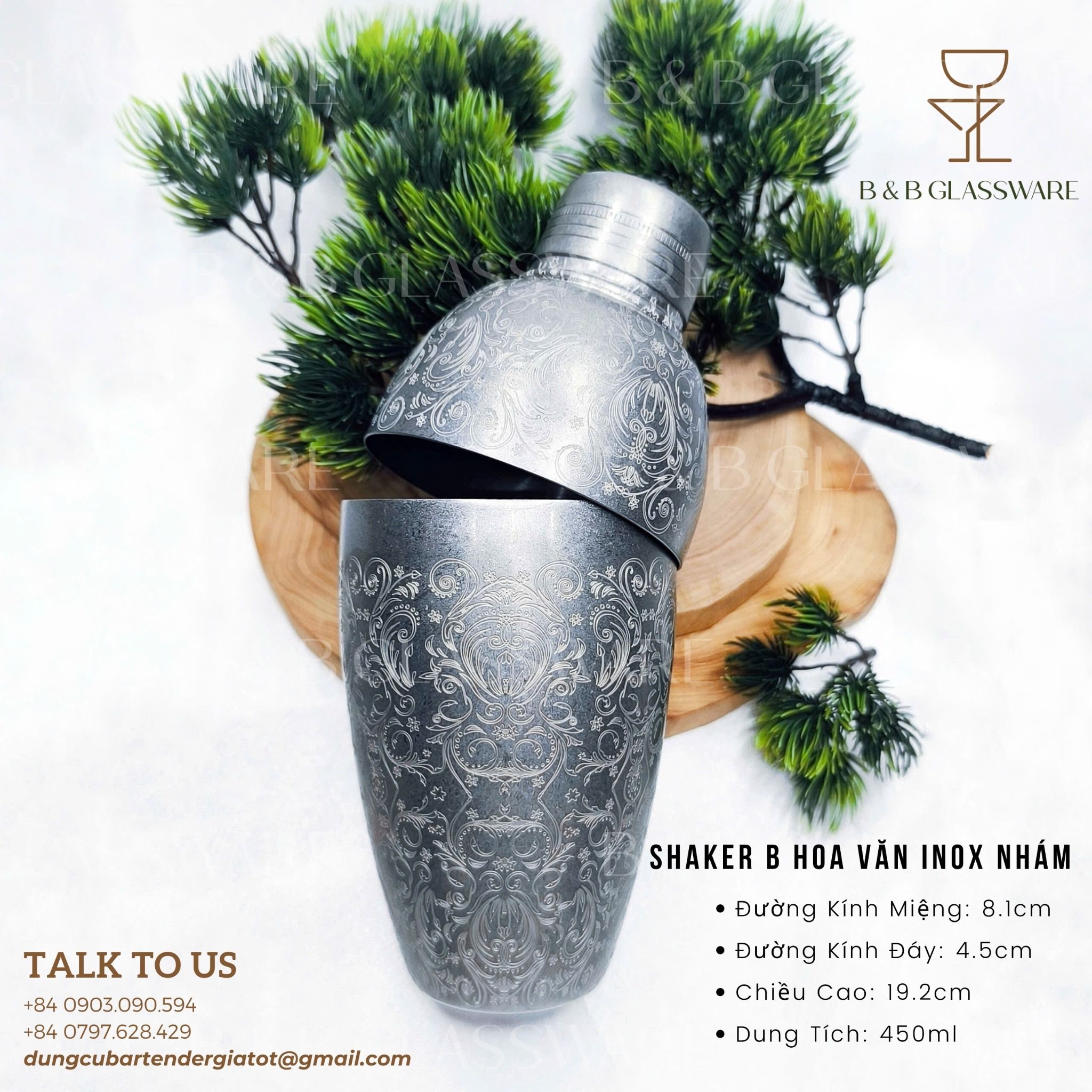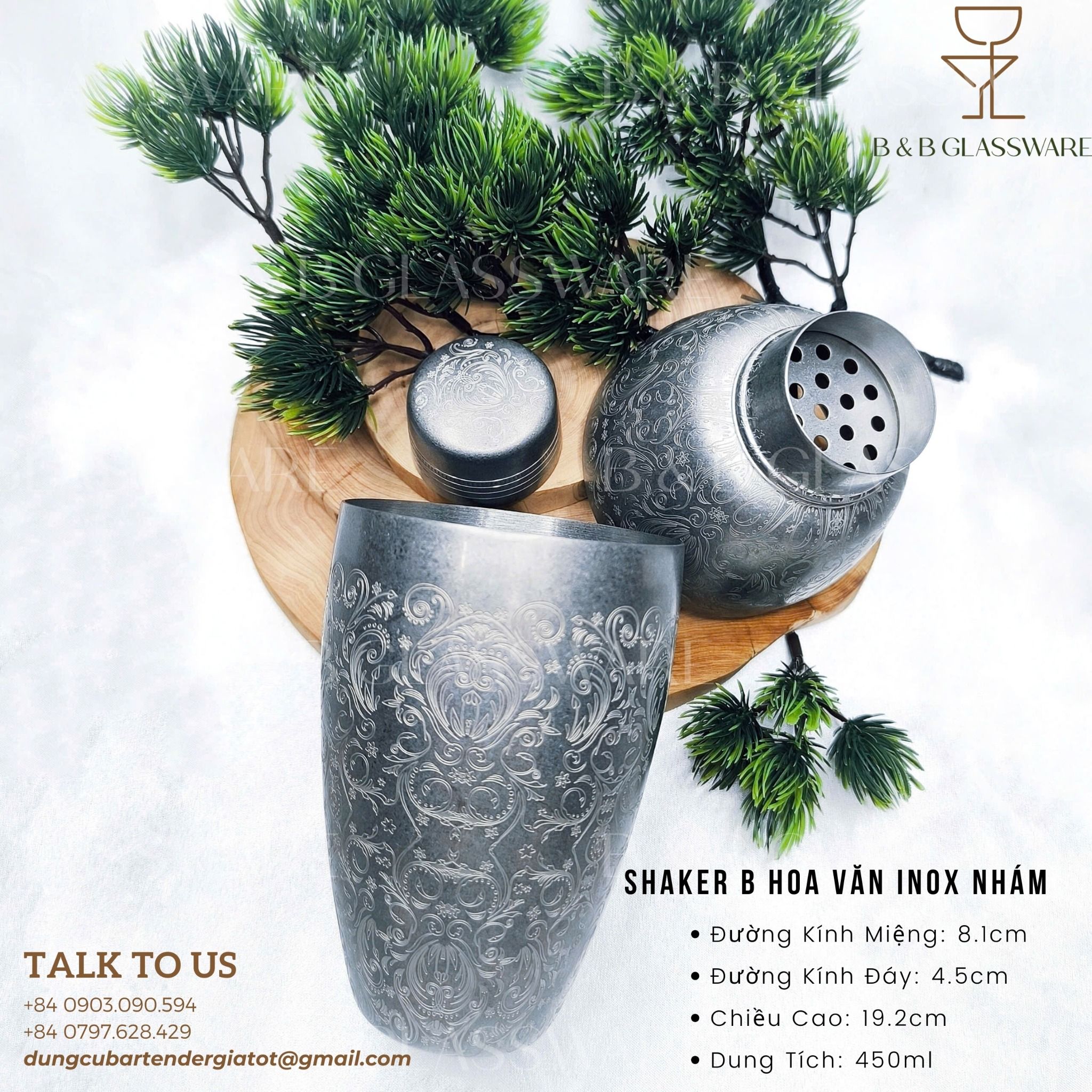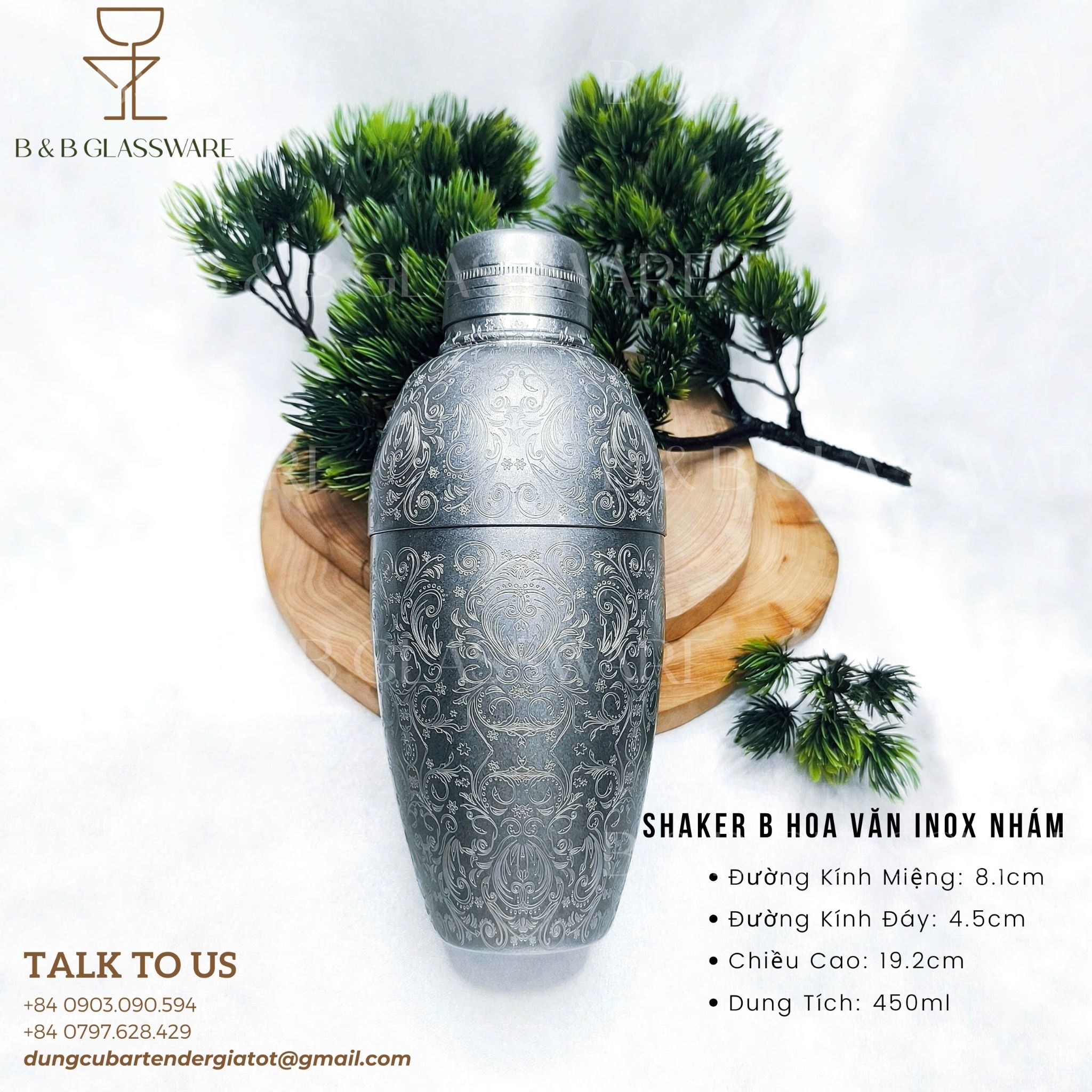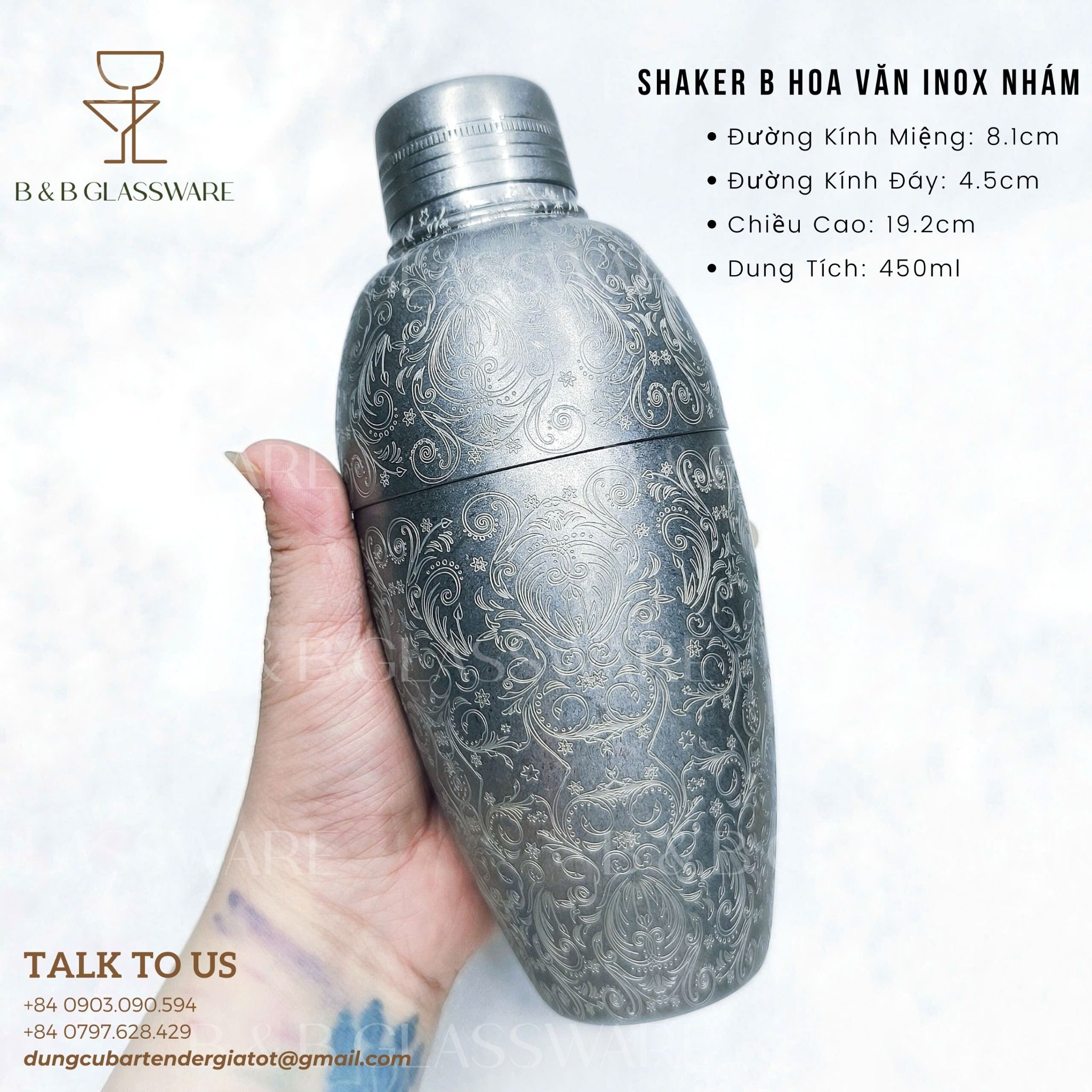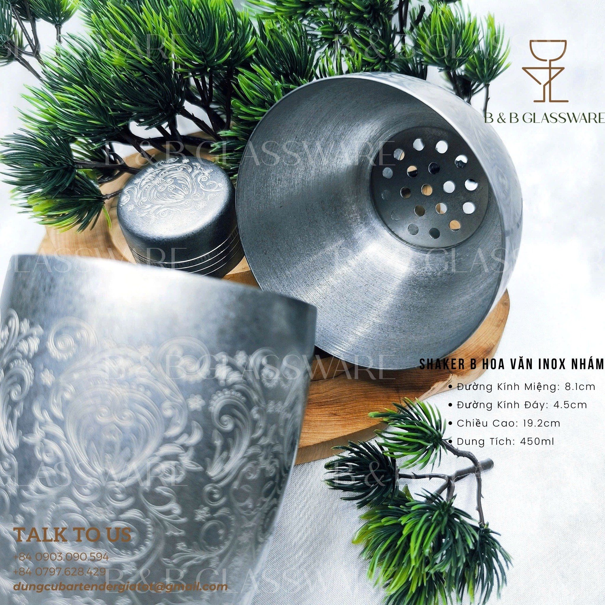 - Tên sản phẩm: Shaker B Hoa Văn Inox Nhám