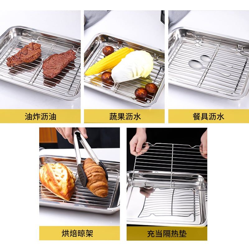 Khay có thể dùng nướng trong lò, hấp cách thủy, hoặc hứng dầu mỡ khi chiên nướng.